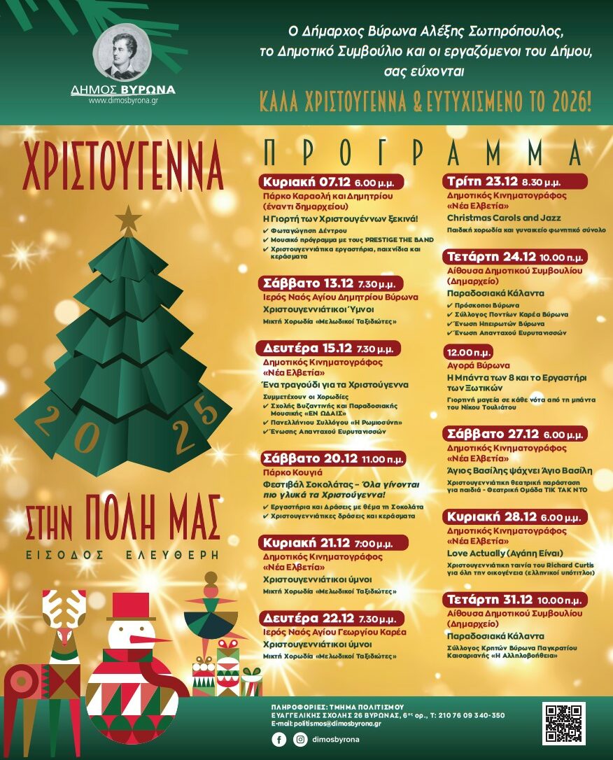 Σας περιμένουμε όλους για να ζήσουμε μαζί την πιο φωτεινή και γιορτινή έναρξη των Χριστουγέννων στον Βύρωνα!